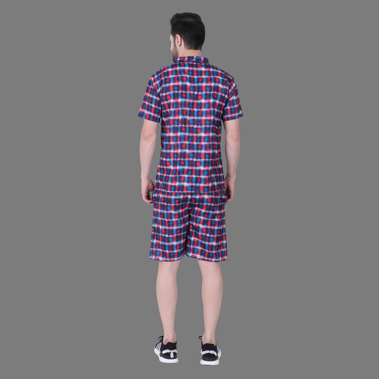 Men’s Cotton Checkered Co-ord Set | Half Sleeve Shirt & Shorts Combo | Casual Loungewear, Nightwear & Summer Outfit for Men